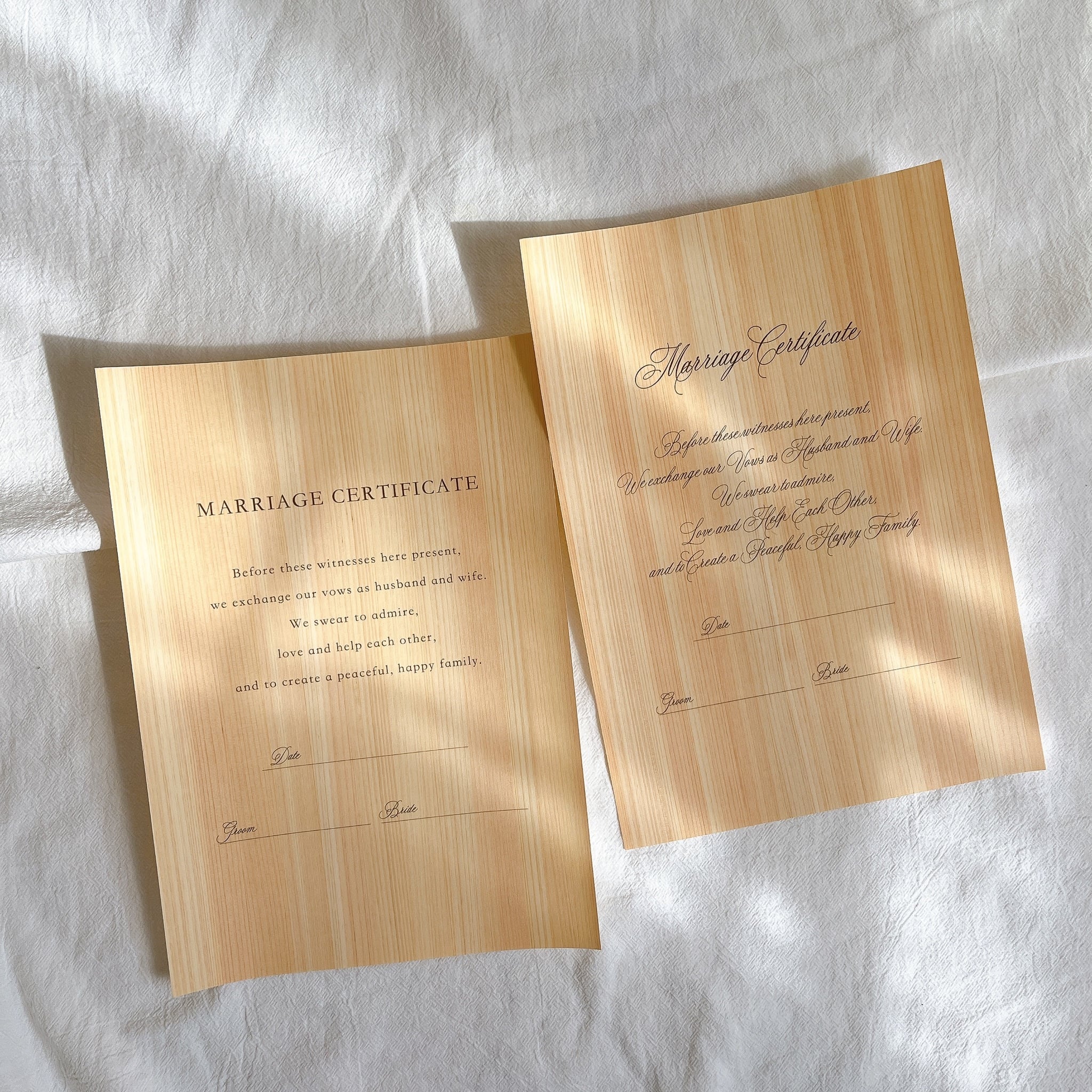 ひのき、コットン結婚証明書 15日